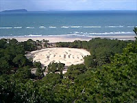 これを見たものは健康で長生きできるという銭形砂絵を拝んで、
